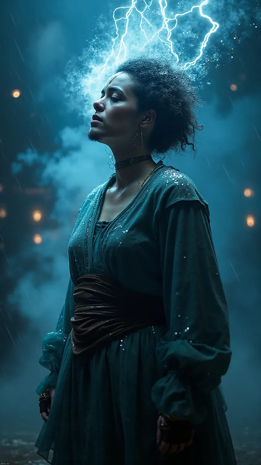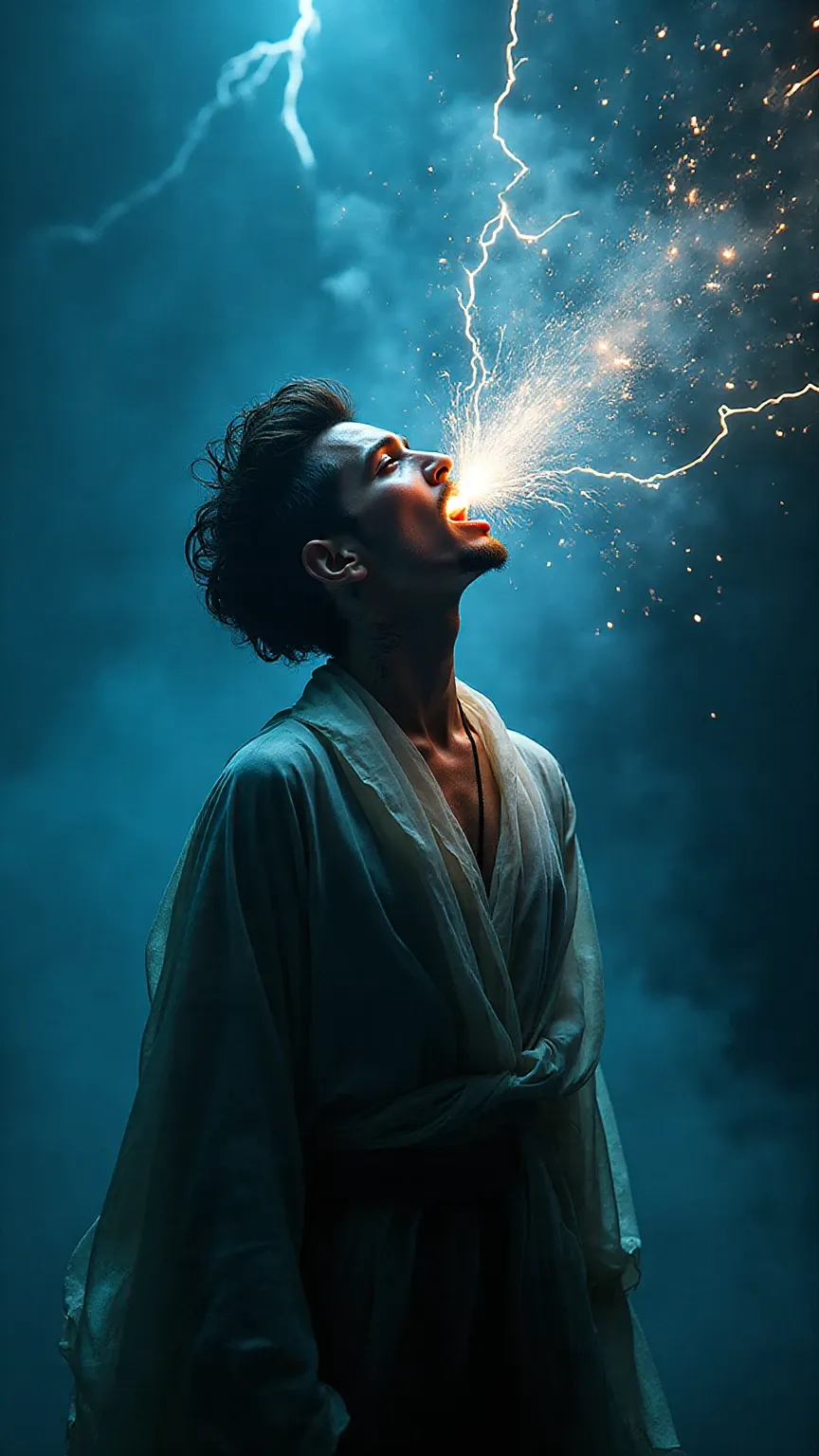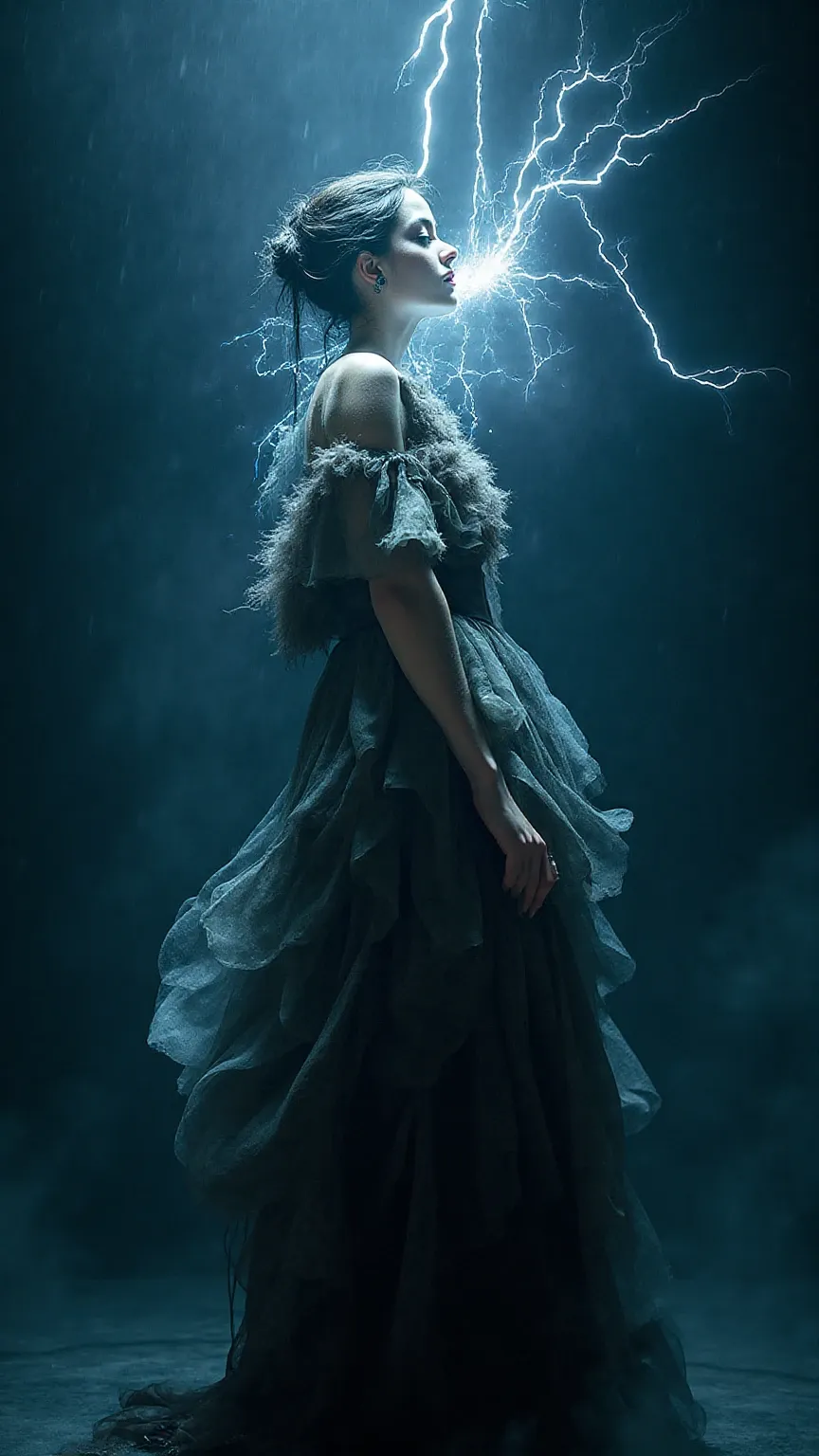 Aria Tempesta is a high-drama visual style that fuses opera with a storm, capturing the moment when a powerful voice becomes weather itself. The style features figures mid-aria, with lightning pouring from their mouths and garments that billow like thunderclouds. It uses a stormy palette of spectral blues, molten glass, and opera crimson, with lighting that mimics both stage spotlights and divine strikes. This is where grief, rage, and ecstasy become visual, showcasing sacred defiance voiced through elemental power.
